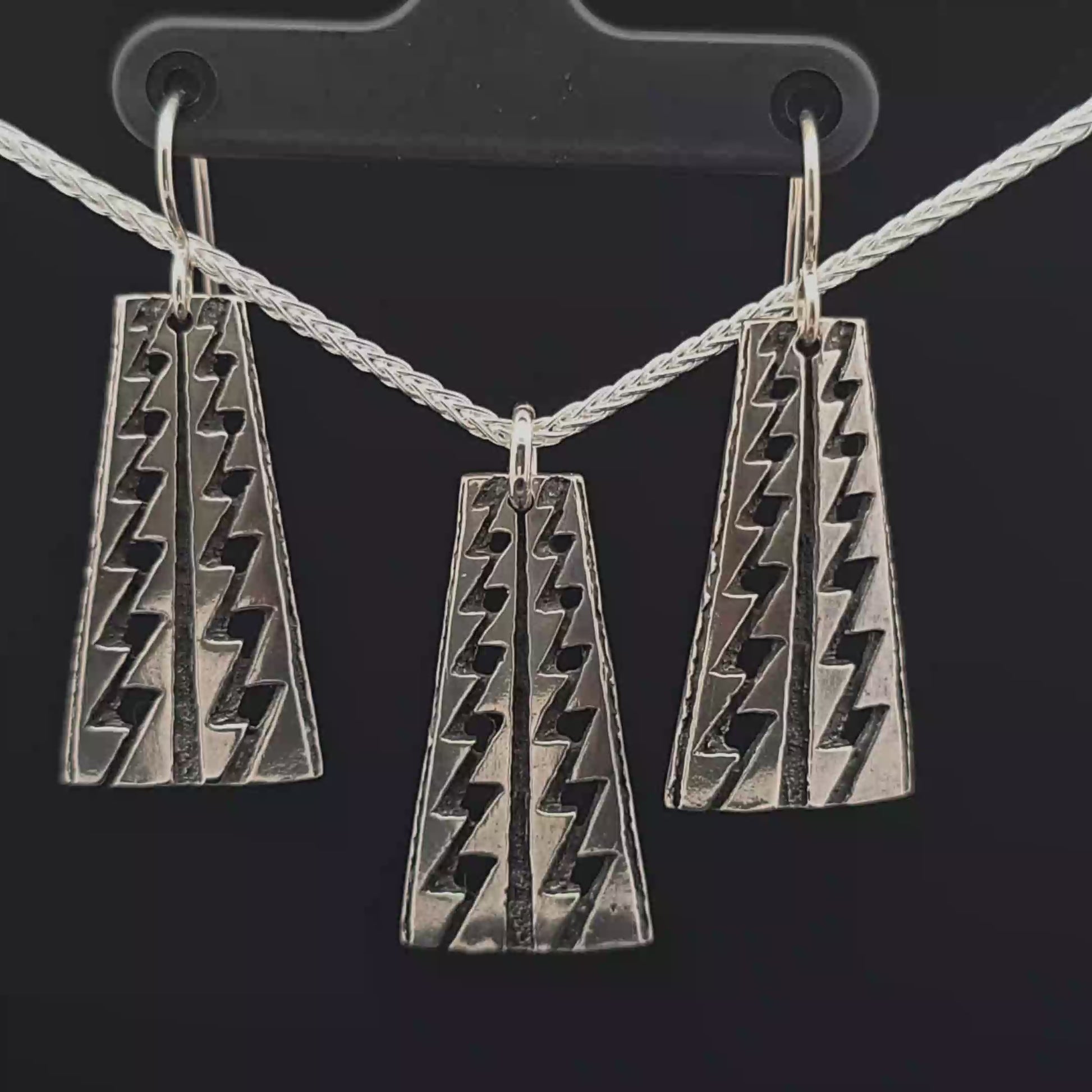This Sterling Silver Earring and Pendant Necklace Set features a traditional Sturgeon Back design. Everything is Sterling Silver including the earring hooks and 20" chain.